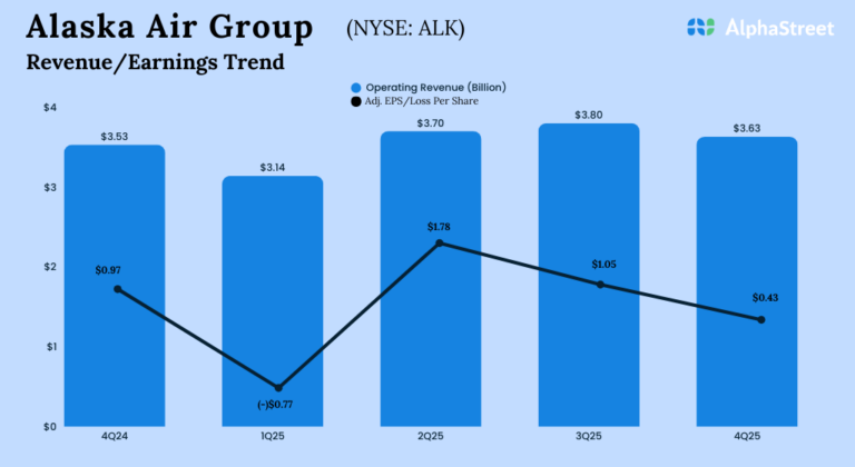 Alaska Air Group Inc. (NYSE: ALK) reported its earnings results for the fourth quarter of 2025. Total operating revenue...