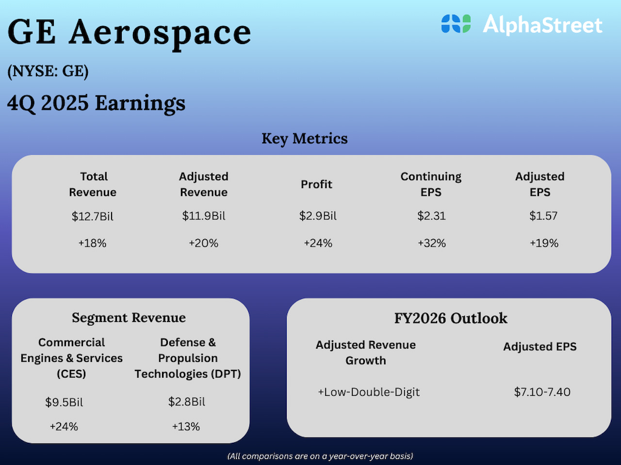 Lawrence Culp, Jr., CEO of GE Aerospace, said, “With a strong fourth quarter, GE Aerospace delivered an outstanding year as revenue grew 21%, EPS was up 38%, and free cash flow conversion exceeded 100%. Our performance demonstrates how FLIGHT DECK is taking hold as we accelerated services and equipment output to fulfill our growing backlog of roughly $190 billion.”