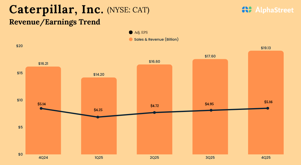 Caterpillar Inc. (NYSE: CAT) reported its fourth quarter 2025 earnings results today.