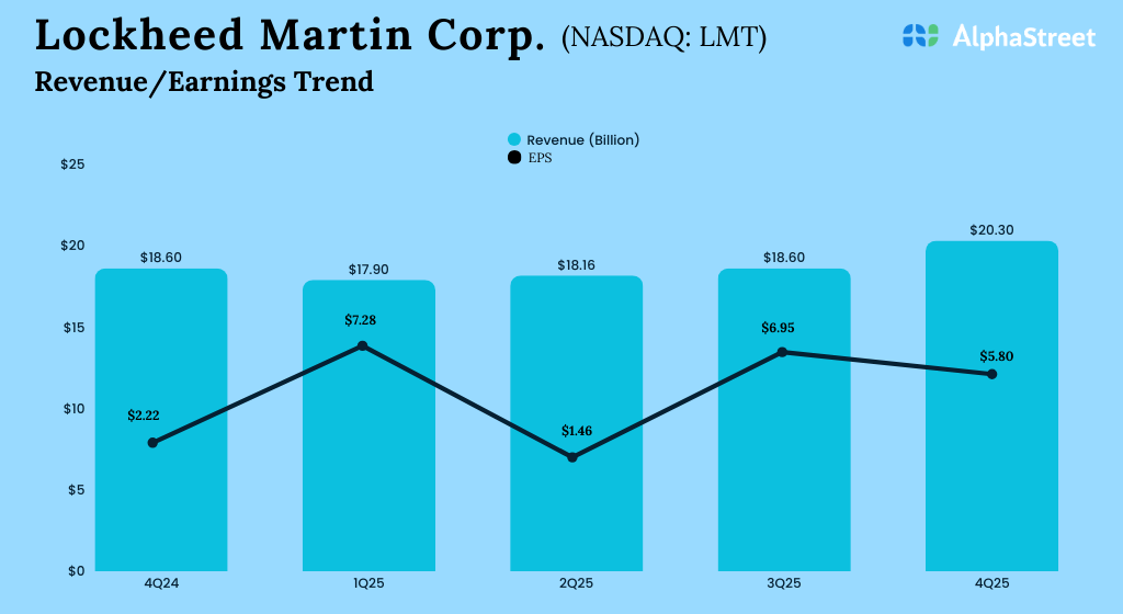 Lockheed Martin Corporation (NYSE: LMT) reported its fourth quarter 2025 earnings results today.