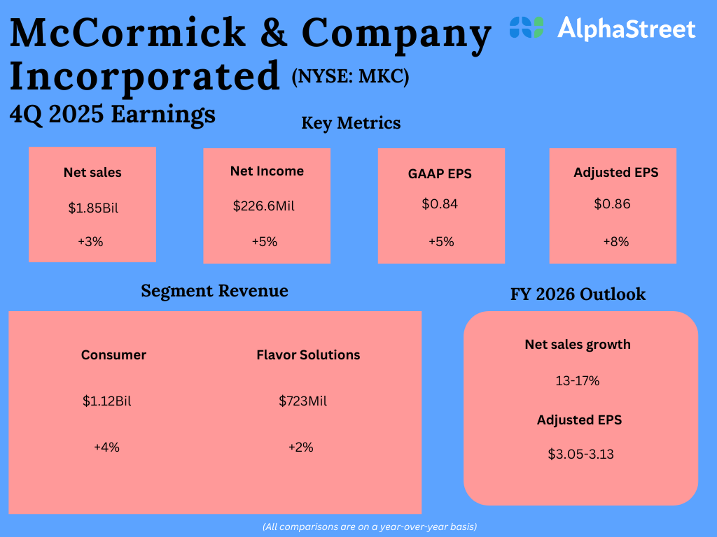 McCormick & Company, Incorporated (NYSE: MKC) reported its fourth quarter 2025 earnings results today.