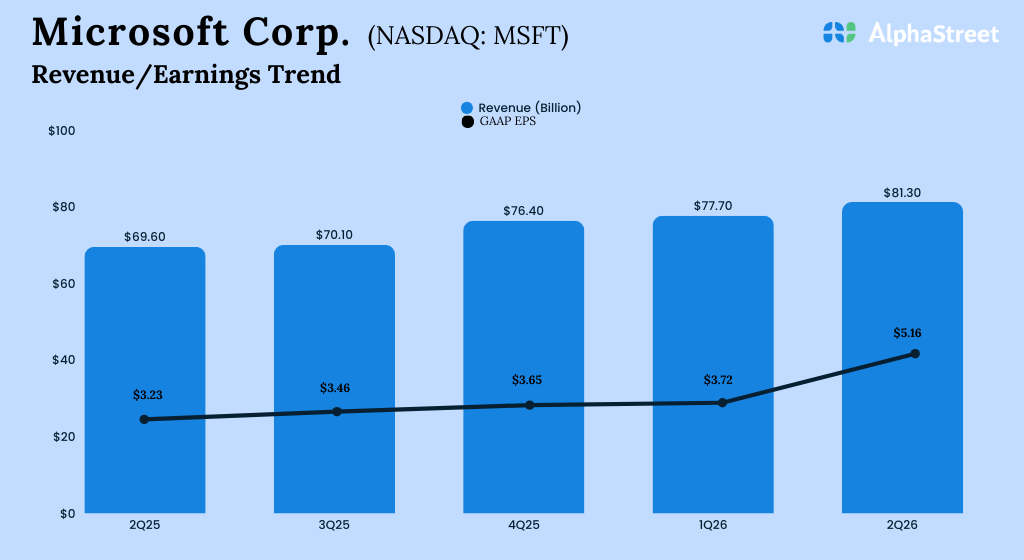 Microsoft Corporation (NASDAQ: MSFT) reported its second quarter 2026 earnings results today.