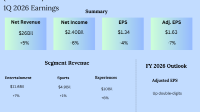 Shares of The Walt Disney Company (NYSE: DIS) fell over 4% on Monday, despite the company beating expectations on its first quarter 2026 earnings results.…