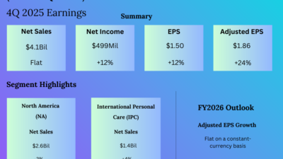 Kimberly-Clark Corporation (NASDAQ: KMB) reported its fourth quarter 2025 earnings results today. Net sales of $4.1 billion were down 0.6% year-over-year. Organic sales grew 2.1%.…