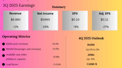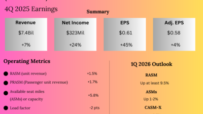 Southwest Airlines (NYSE: LUV) reported its fourth quarter 2025 earnings results. Operating revenues were $7.4 billion, up 7.4% year-over-year. Net income was up 23.8% to…