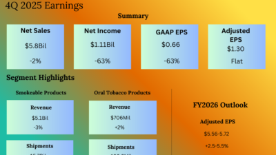 Altria Group, Inc. (NYSE: MO) reported its fourth quarter 2025 earnings results today. Net revenues decreased 2.1% year-over-year to $5.84 billion. Net earnings decreased 63% to…