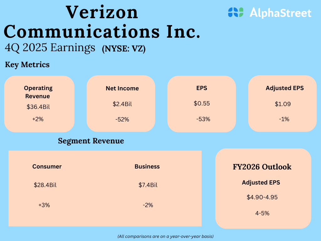 For fiscal year 2026, Verizon expects adjusted EPS of $4.90-4.95, representing a year-over-year growth of 4-5%.